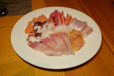一共有帶子、甜蝦、赤貝三文魚、吞拿魚、油甘魚、鯛魚、八爪魚及蟹柳八款刺身,種類夠多,尤其是帶子足有半吋厚,肉質柔嫩;赤貝咬落爽脆;其他幾款魚類切得厚身,蘸點一下醬油,味道更鮮。