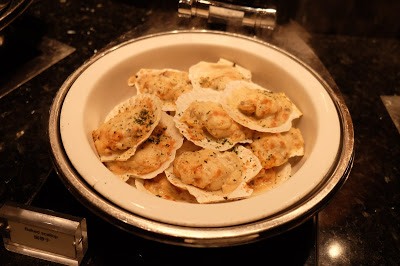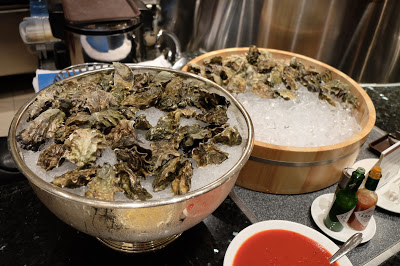 整個海鮮區,放滿了小紅龍蝦仔、鱈場蟹爪、凍蝦、翡翠螺、青口、長腳蟹爪及青口;小龍蝦帶海水咸鮮;兩款蟹爪同樣是啖啖肉,食幾隻都幾飽肚;翡翠螺無砂,而且肉質煙韌,不錯,至於其他幾款海鮮,是各有捧場客的。