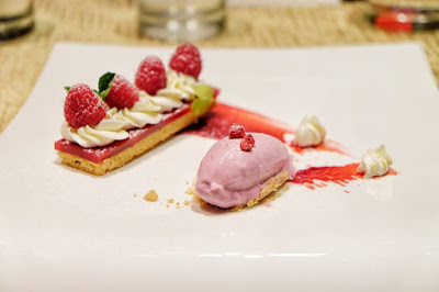 Raspberry jelly and mascarpone sable, seasonal mixed berries yogurt ice cream