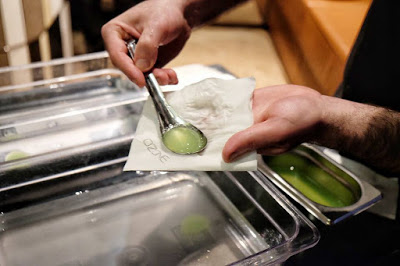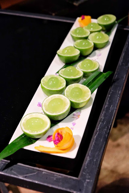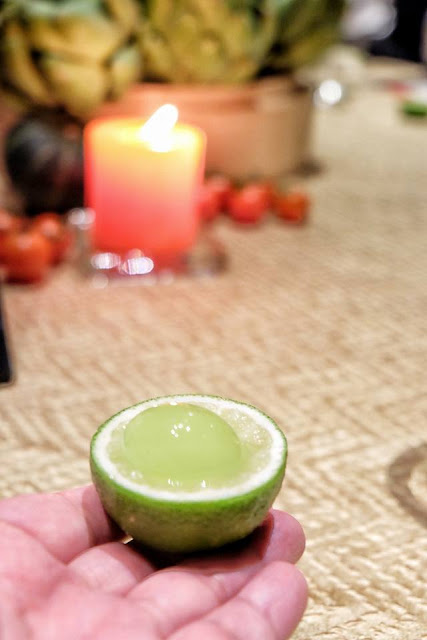 首先出場的Cocktail,已經令人有驚喜,用分子料理手法,將Mojito打造成吹彈即破的水珠,更以半開青檸作杯,在舌尖迸裂的一刻,真是充滿了玩味。