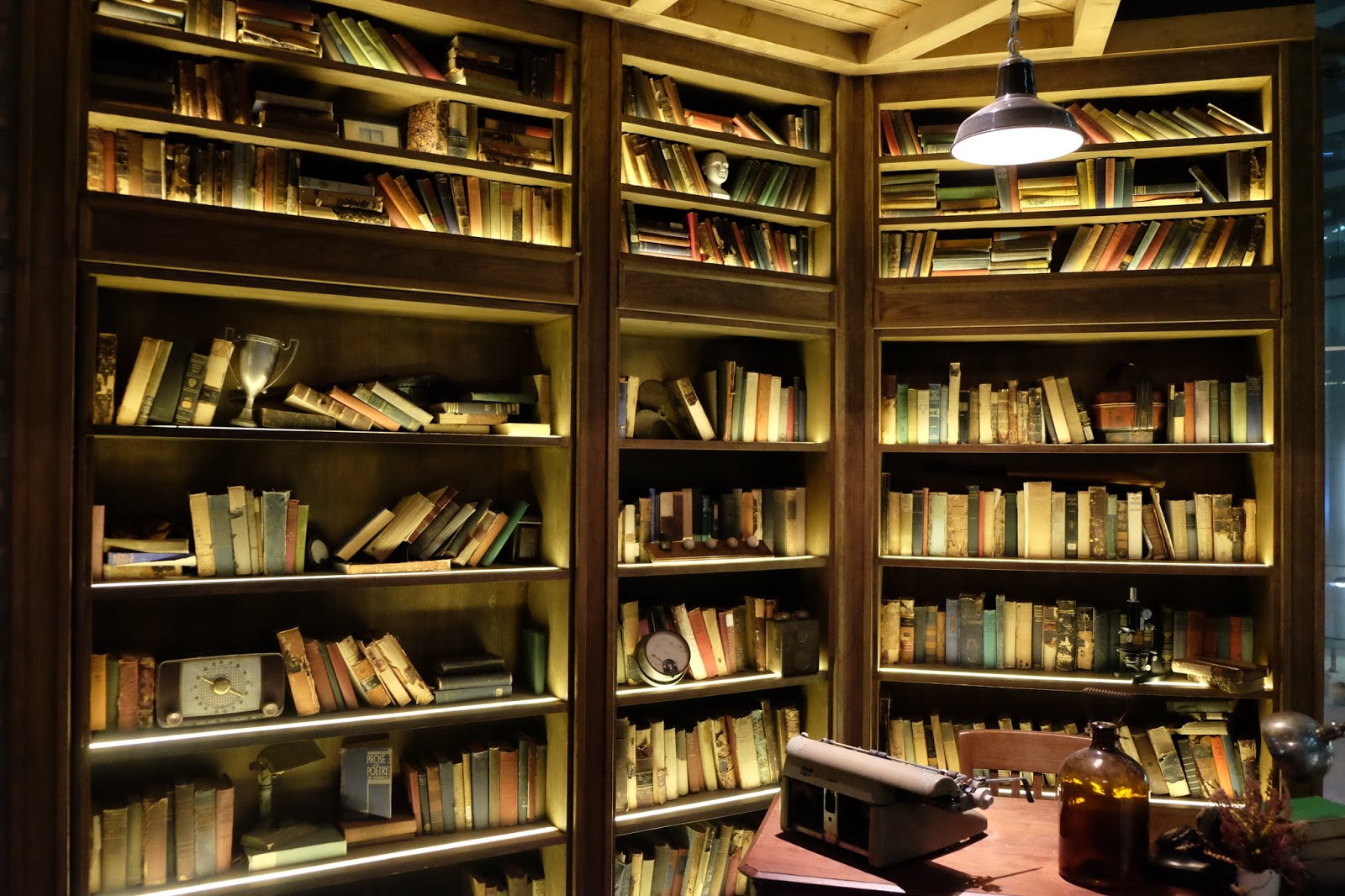明明係一間書房,一邊牆是到頂的書架,仲有一座鋼琴,真有偵探小說的佈局。