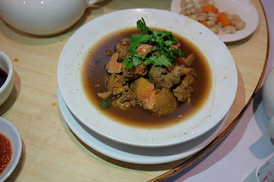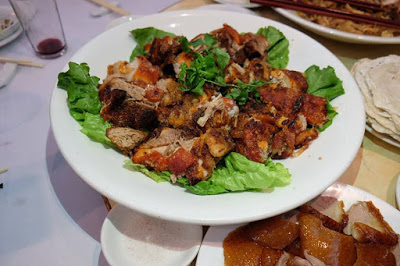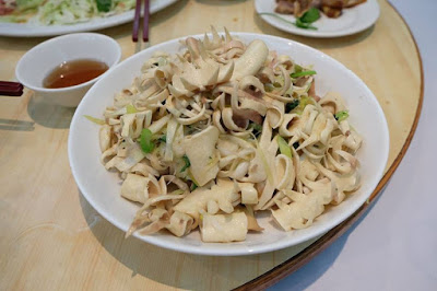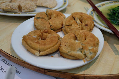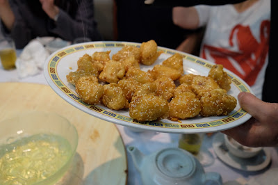 肘子先行蒸過,將油份逼走,然後再炸,質地已變得鬆軟,但份量實在太大,很有老北方豪邁粗獷的風味,一檯13人都難以消滅,結果要打包走。