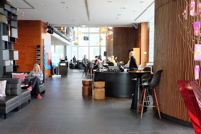 大堂樹立了兩條直通四層樓層的大圓柱,刻意打做成樹木的感覺,空間感闊落,又有室外自然光透入,倍覺舒適。