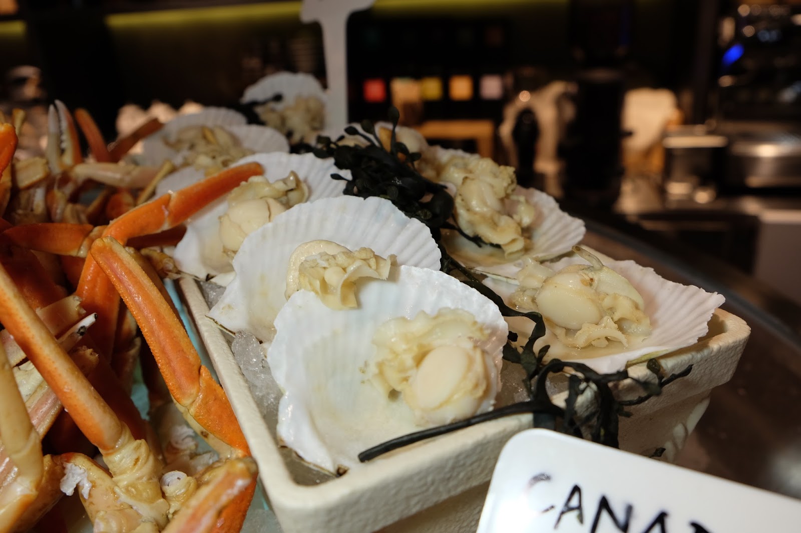 其他海鮮有加拿大鱈場蟹、新西蘭青口、熟蝦及帆立貝,陣容比起Dinner Buffet是毫不遜色,尤其是凍蝦,大隻而肉爽,質素上乘,而鱈場蟹爪更是啖啖肉,相信海鮮迷一定收貨。