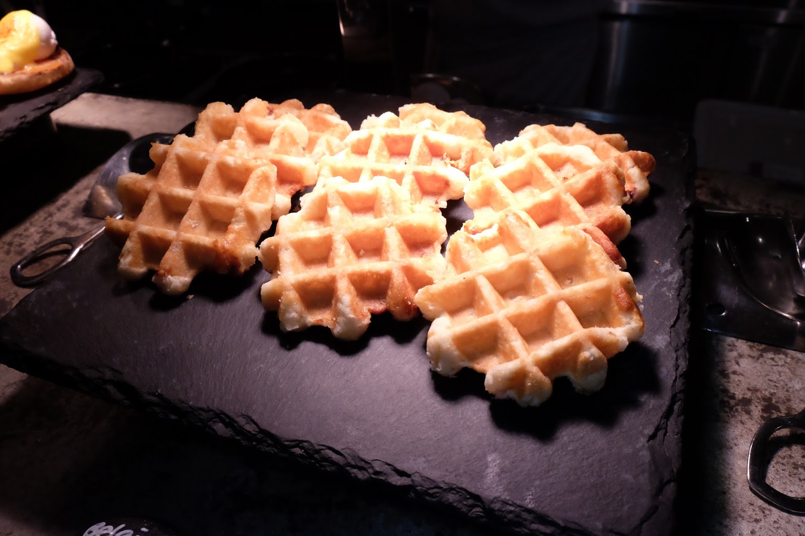 上次在The Place品嚐不到 Raclette Cheese,已經十分失望,想不到會在Sunday Brunch重現,當然不能錯過,熱辣辣的半溶芝士蓋在著角上,濃郁的奶香四溢,實在令人難以忍受,要盡快消滅。