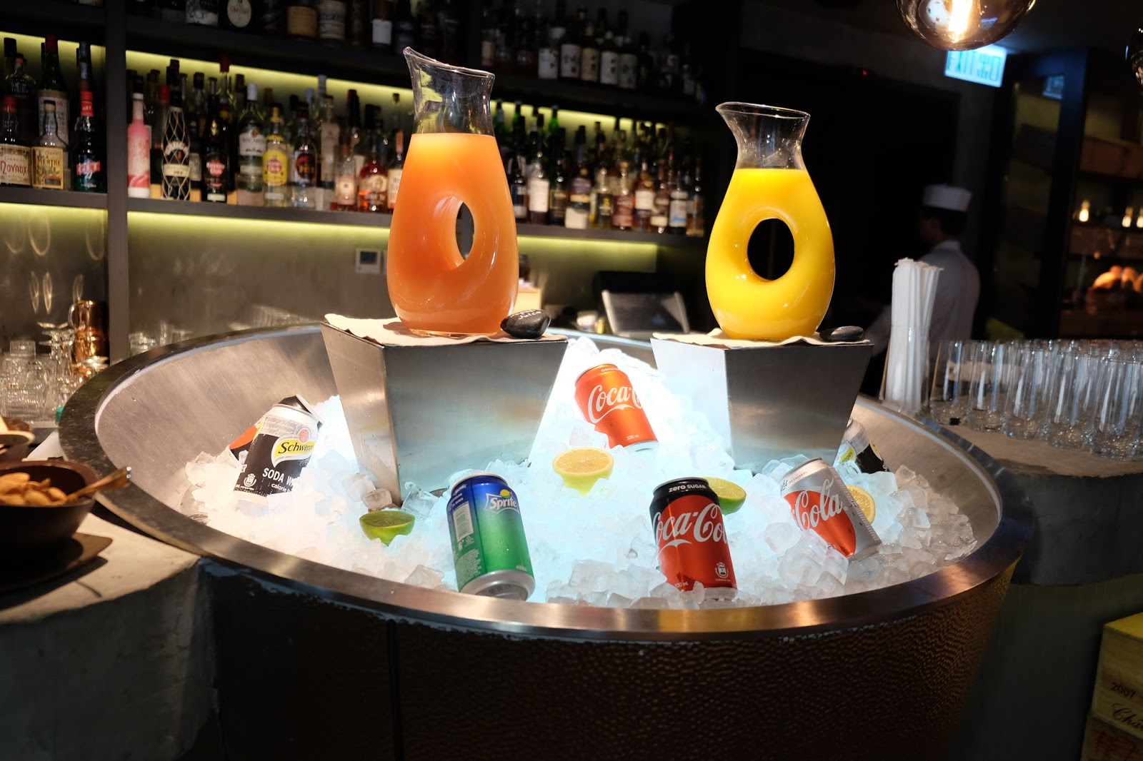 除了橙汁、西柚汁及汽水任飲之外,客人只要另加$280,就可以free flow Laurent-Perrier香檳,或者Bloody Mary,而且客人可自行添加番茄汁及辣汁,酸辣度都是個人口味,真有趣。