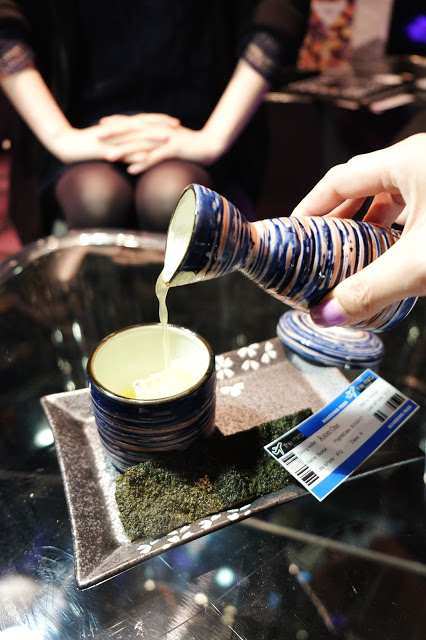 Flight to Kai Tak由 Tequila、青檸汁、橙汁、楓糖糖漿、Crème de cassis與及新鮮酸桔仔混和,伴碟是幾片紫菜及Q版登機證,充滿了玩味,呷一口,酸酸甜甜的,酒精度又不高,慢慢喝,真寫意。