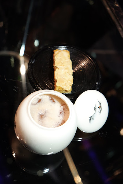 壓軸的Kowloon Walled City有Vodka、鮮青檸汁、三重蒸餾的利口酒、荔枝味的liqueur、海鹽焦糖、木槿糖漿、意大利氣泡酒、Salt Flakes與及Orange Bitters,味道複雜多變,就似九龍城寨內的環境,今次伴碟是脆脆杏仁條,酒香與杏香的結合,是一種嶄新的口味。