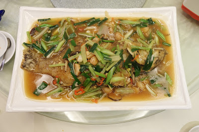 海班煎得皮脆肉嫩,蓋大量芹末、蔥花及豆醬,魚肉夾雜了豆香及芹香,變得不再單調,亦是一道充滿了風味的菜色。
