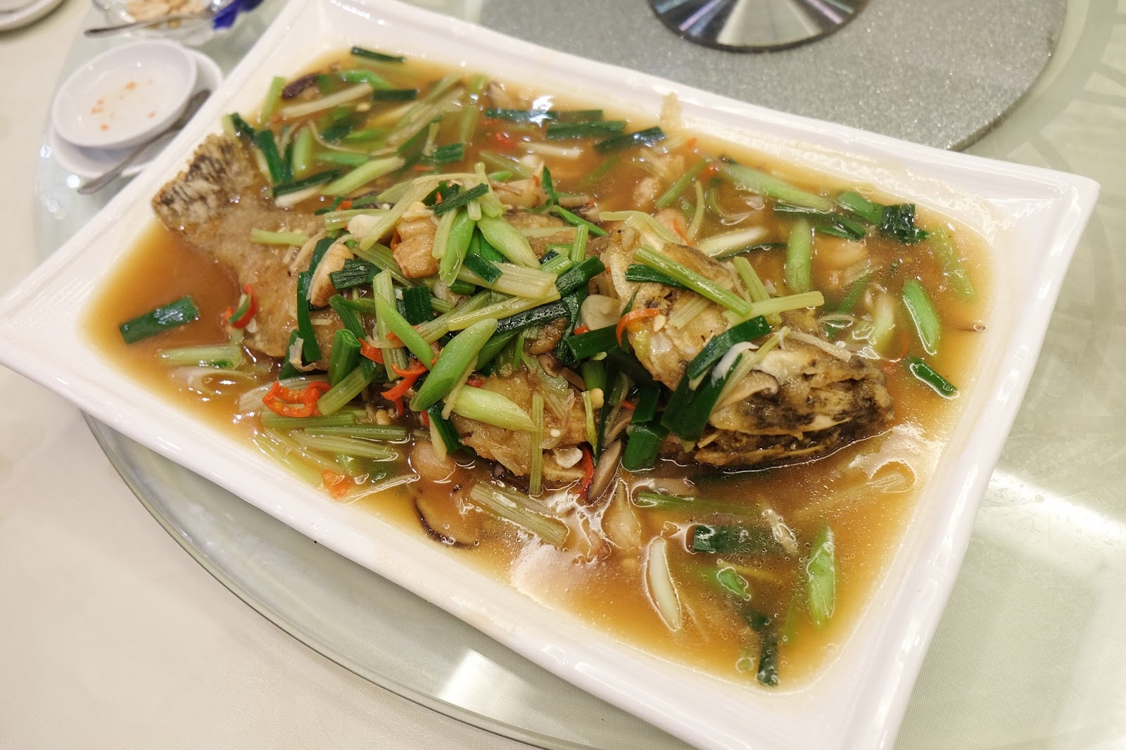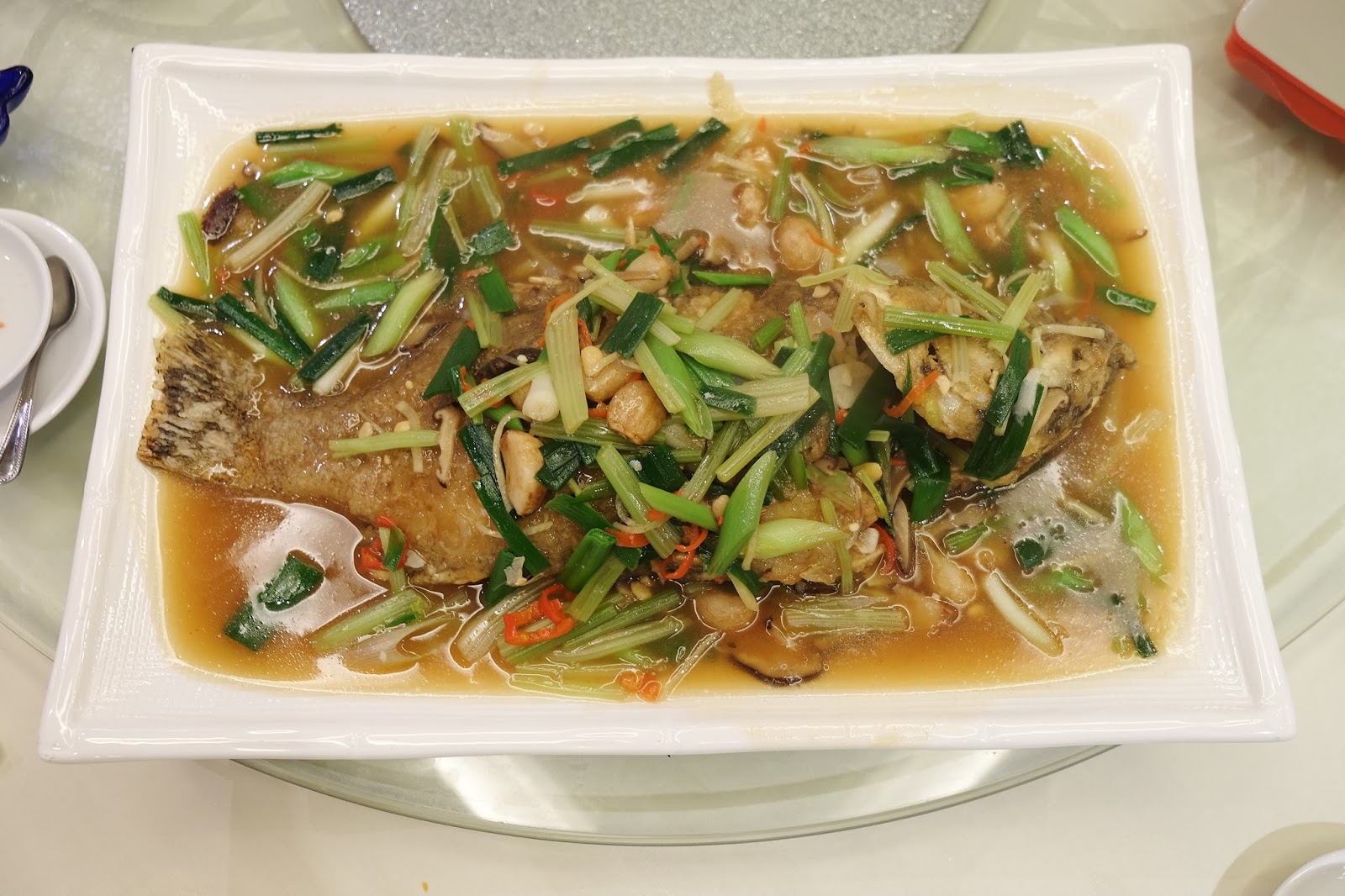 海班煎得皮脆肉嫩,蓋大量芹末、蔥花及豆醬,魚肉夾雜了豆香及芹香,變得不再單調,亦是一道充滿了風味的菜色。