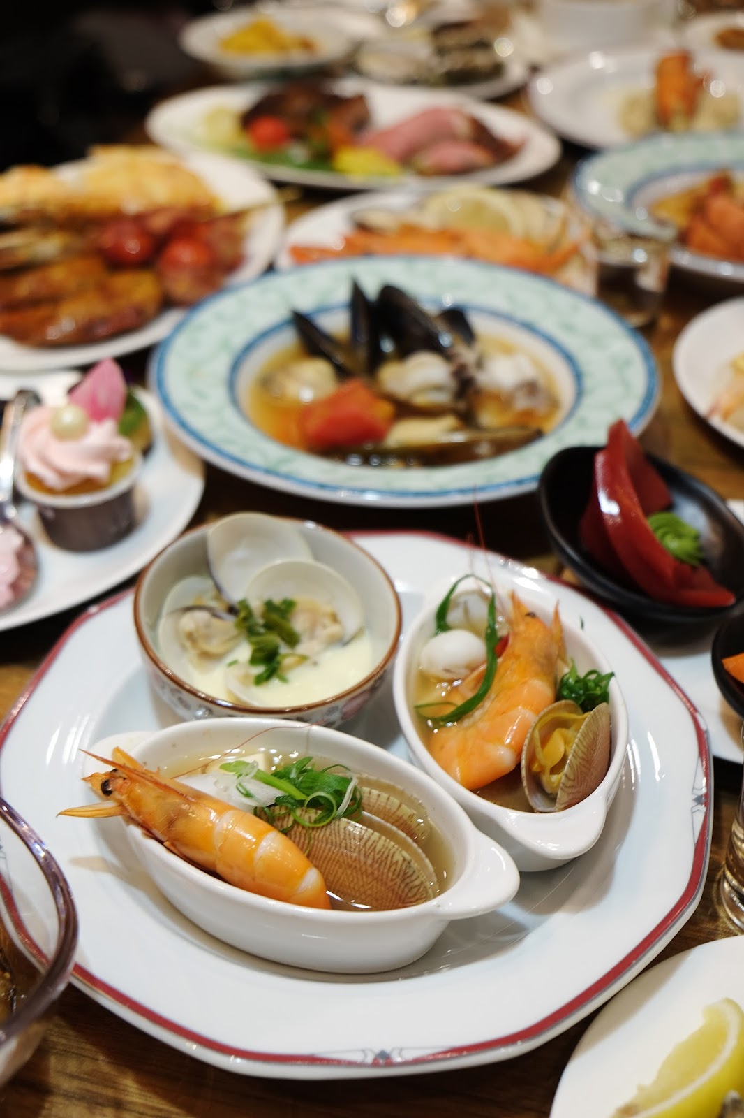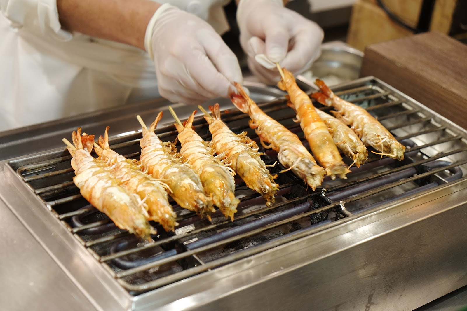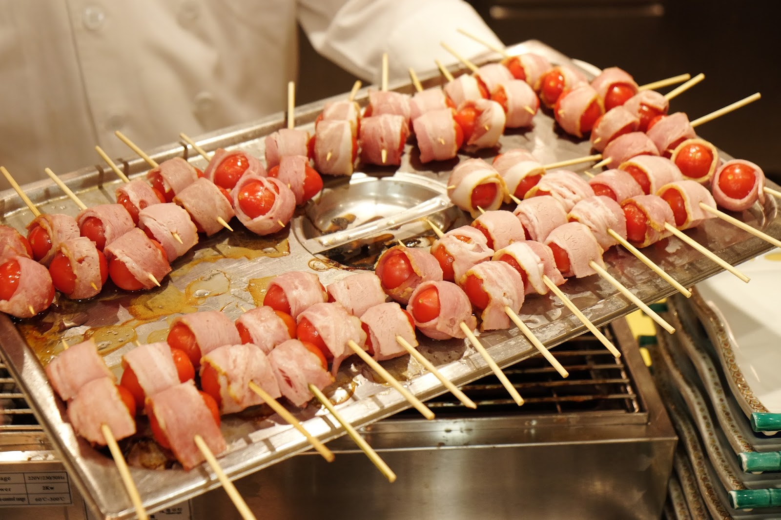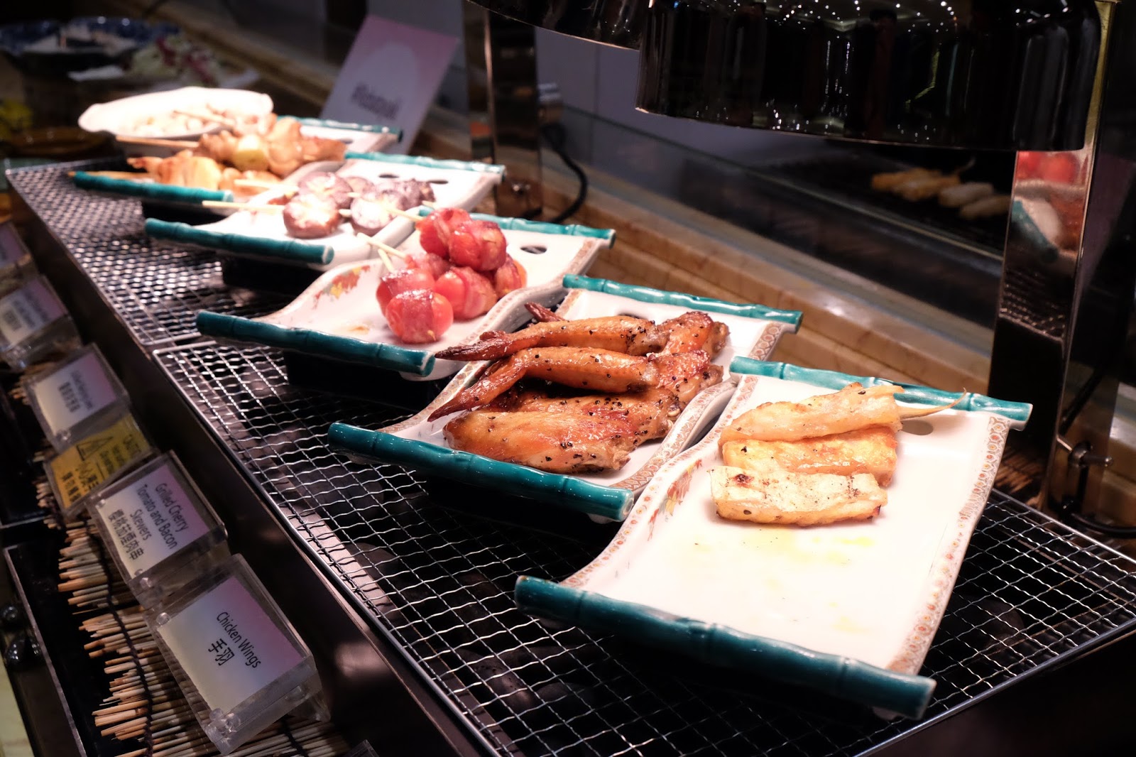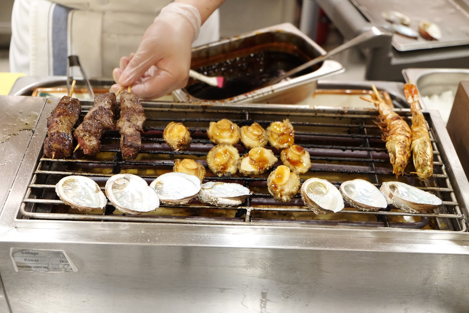 至於超多款烤物有烤牛柳粒、烤鮑魚、烤大海蝦、烤肉眼牛扒、烤雞翼、烤櫻桃茄煙肉串、鹽燒銀杏及長蔥雞肉串。