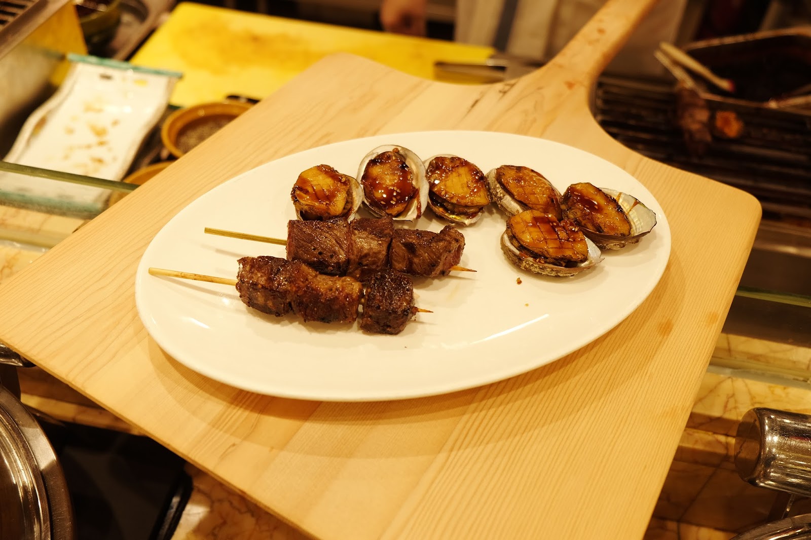 首推原隻鮑魚,QQ的口感,塗上日式醬油,香氣四溢,相當吸引,更可以任取,但人多時要等等。