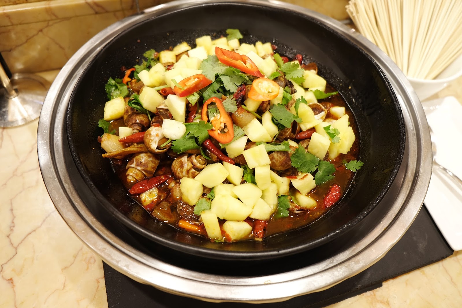辣酒煮花螺辣度輕盈,但食落有點結實。