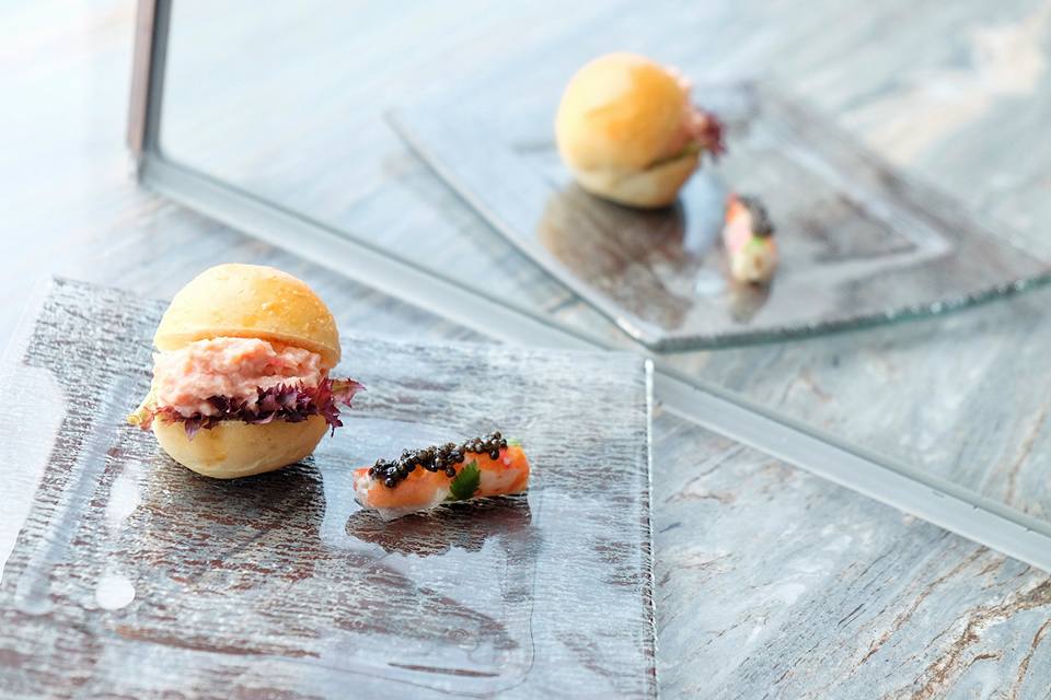 小巧精繳,醃過的日本大根削成通透的薄片,緊緊地包裹了內裡的松葉蟹柳,隱約透出蟹肉的色澤,然後放上魚子醬,令味道及口感都使人著迷。