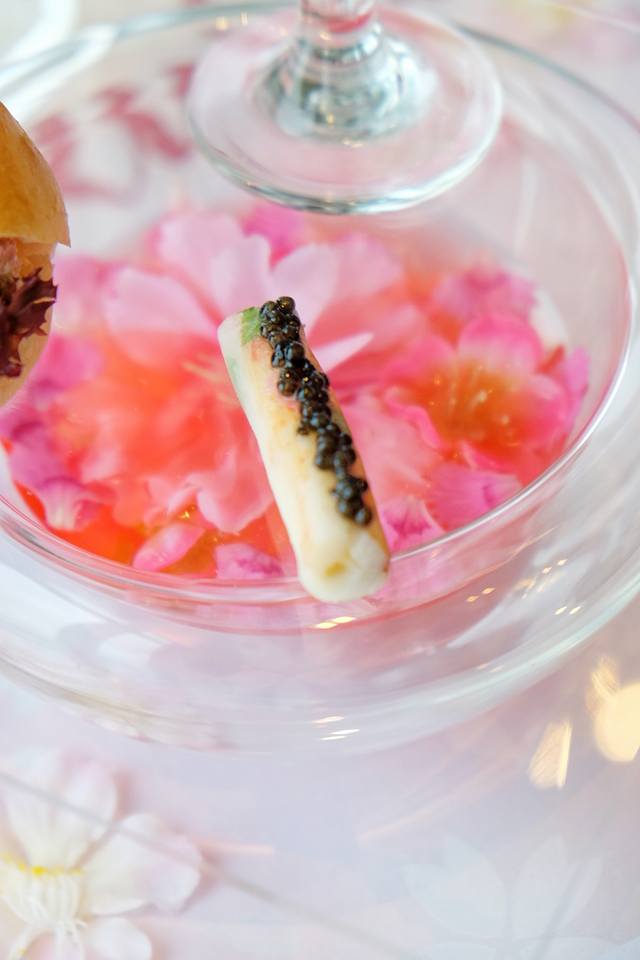 sakura flower-marinated radish roll with zuwai crab and caviar