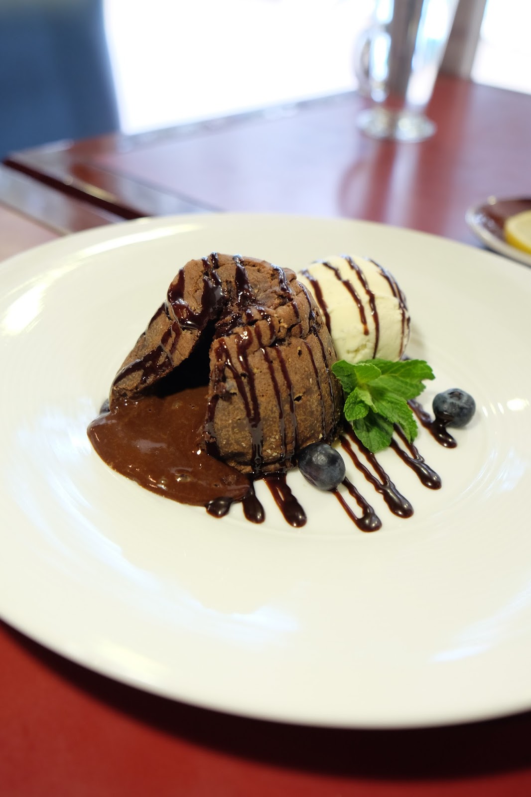 甜品是心太軟配上Movenpick的雲呢拿雪糕,很基本的黑白配搭,冷靜與熱情的結合,用餐刀輕輕割開,朱古力漿徐徐流出,賣相及口感相當對辦,自己只試了些少,其他的都給同行的兩位靚女消滅了。