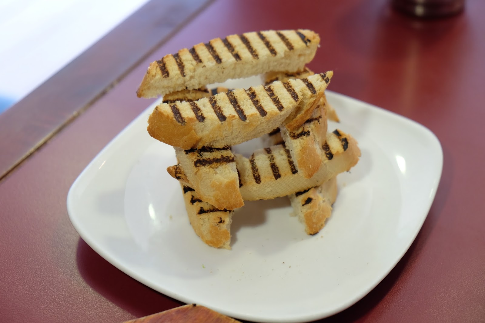 餐前送來的 Baked Camembert Cheese可以說是店方名物,放上蒜片及香草,然後烤至半溶,揉合了不同的香氣,而特色烤法包,烘至外脆內軟,兩者一配合,足以令人吃過不停。