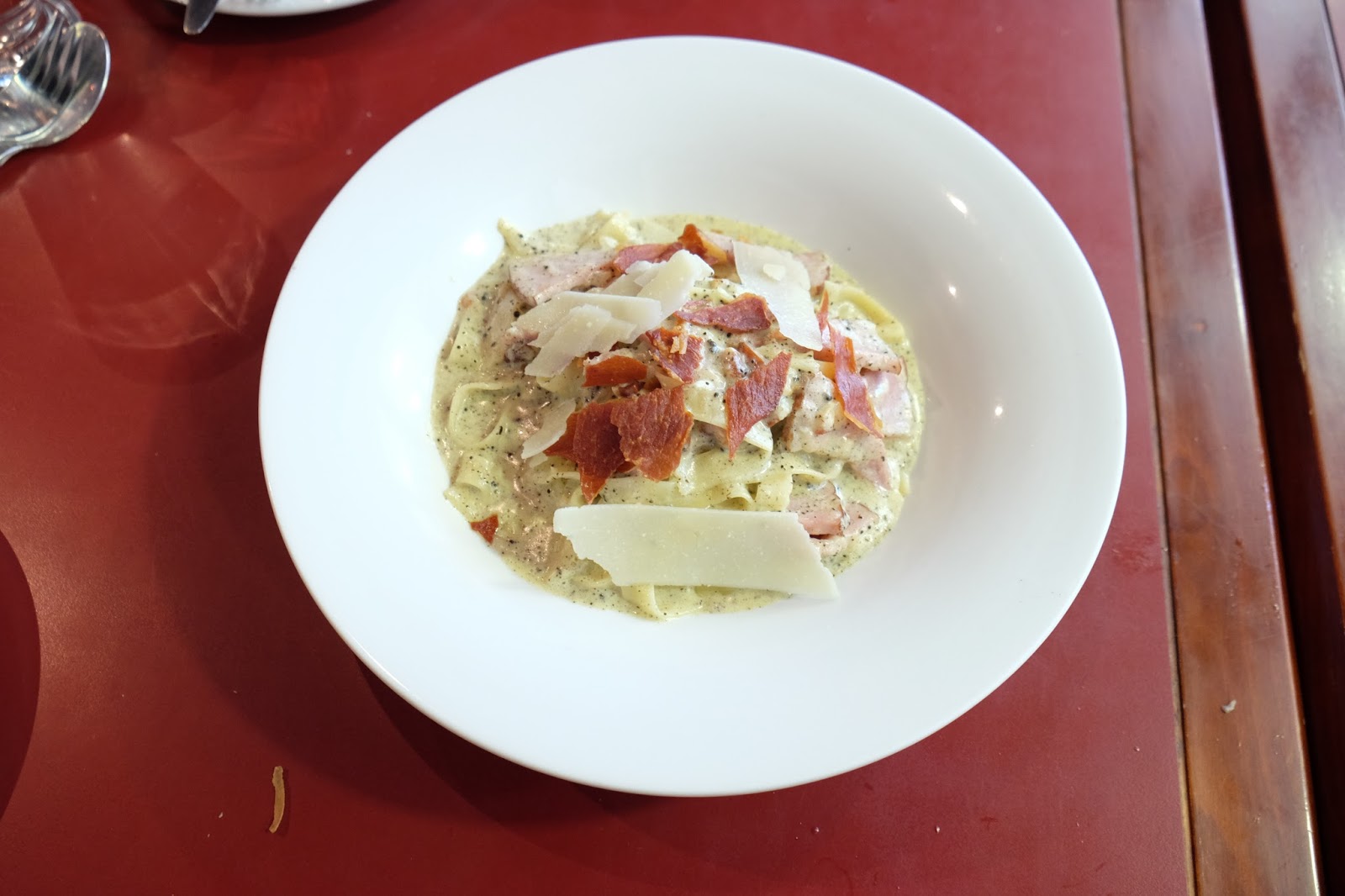 而朋友點了Fettuccine Carbonara with Black Truffle,以巴馬臣芝士、羊奶硬芝士、黑胡椒及黑松露忌廉汁烹調的醬汁,麵條掛汁的能力很強,而且很有嚼口,只不過多吃幾口便覺得有點膩,最好跟幾位朋友分享。