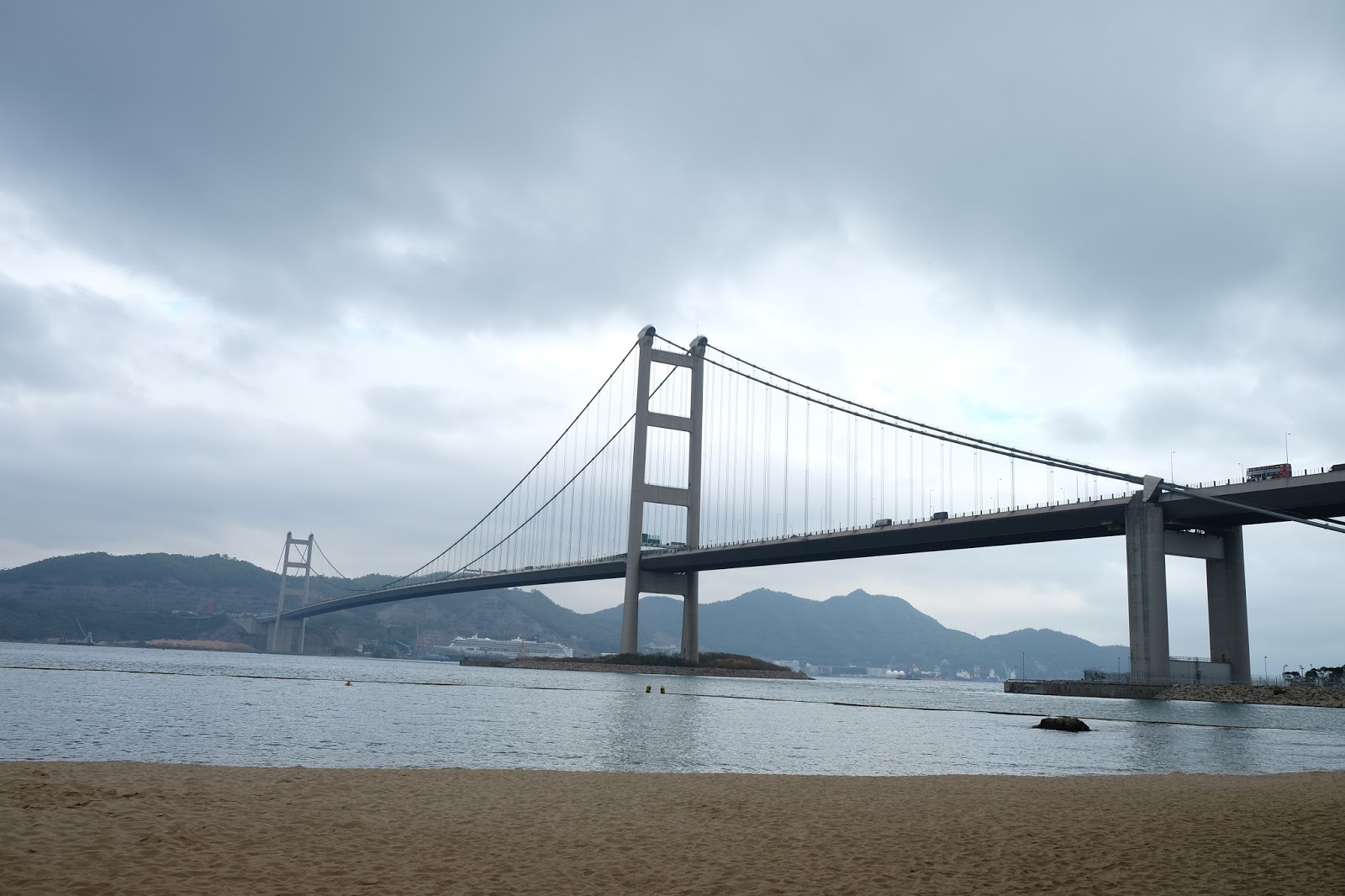 餐後,信步落沙灘慢行,遠眺青馬大橋的景色,有種安寧謐靜的感覺,可惜同行的不是另一半。