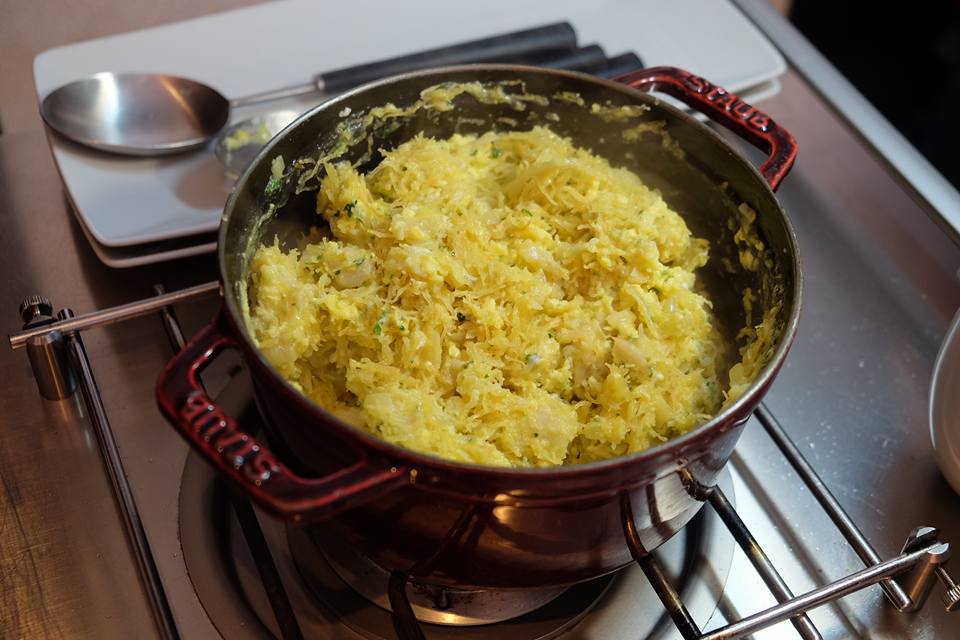 食友是愛甜家族,近日喜事重重,特意泡製一個慶祝版,輕輕割開,南瓜漿徐徐流出,烤焗時間處理得相當好,團團圍住南瓜蛋糕的乳清乾酪,滑溜可口,吃起來甜而不膩。
