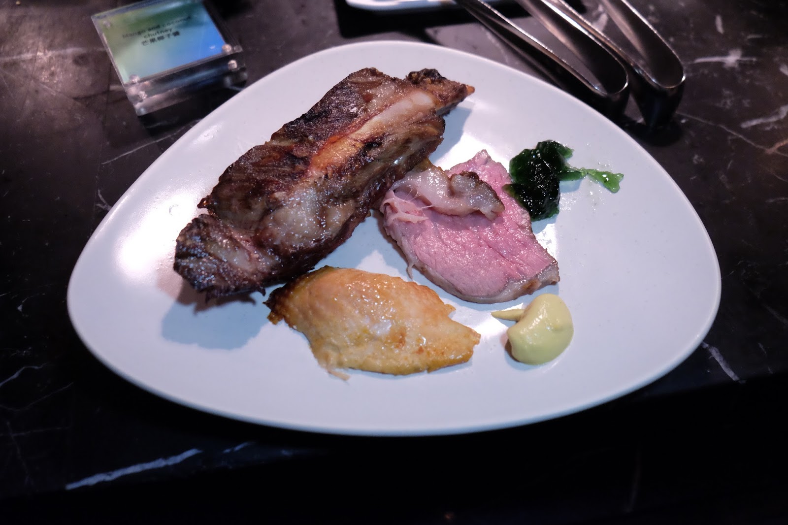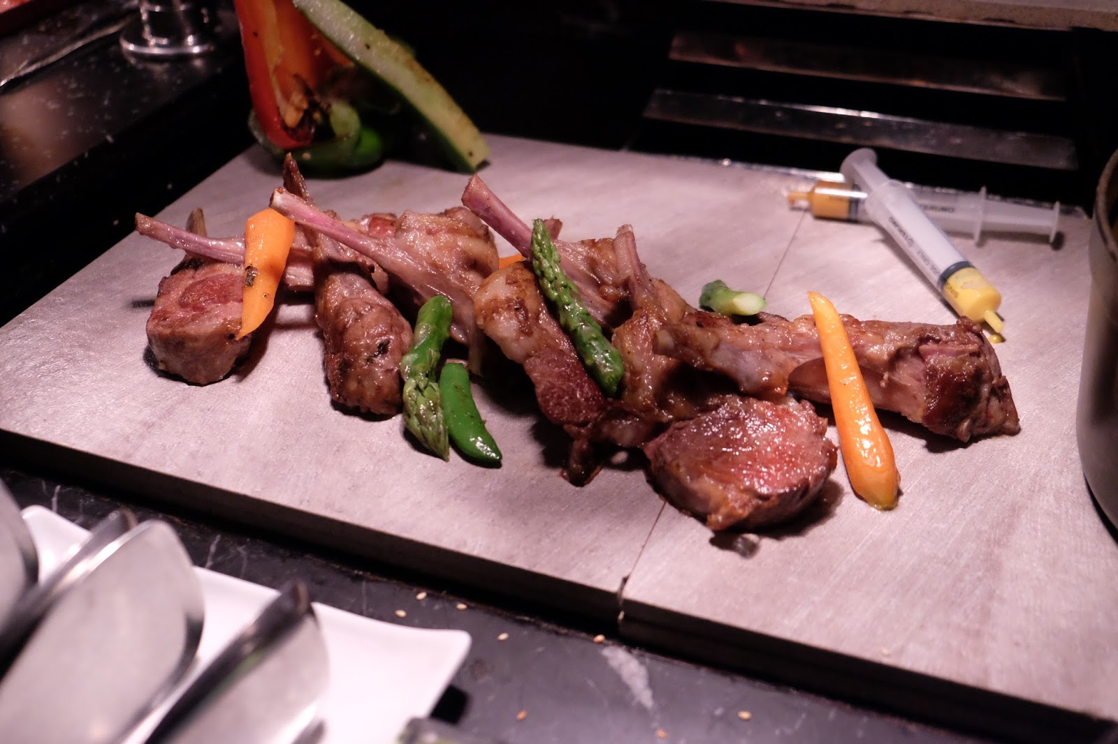 在食物吧正中位置有燒牛扒、烤雞、羊架及香煎鵝肝,食肉獸肯定不會失望,不過羊架sauce用上針筒注射,就充滿了玩味。