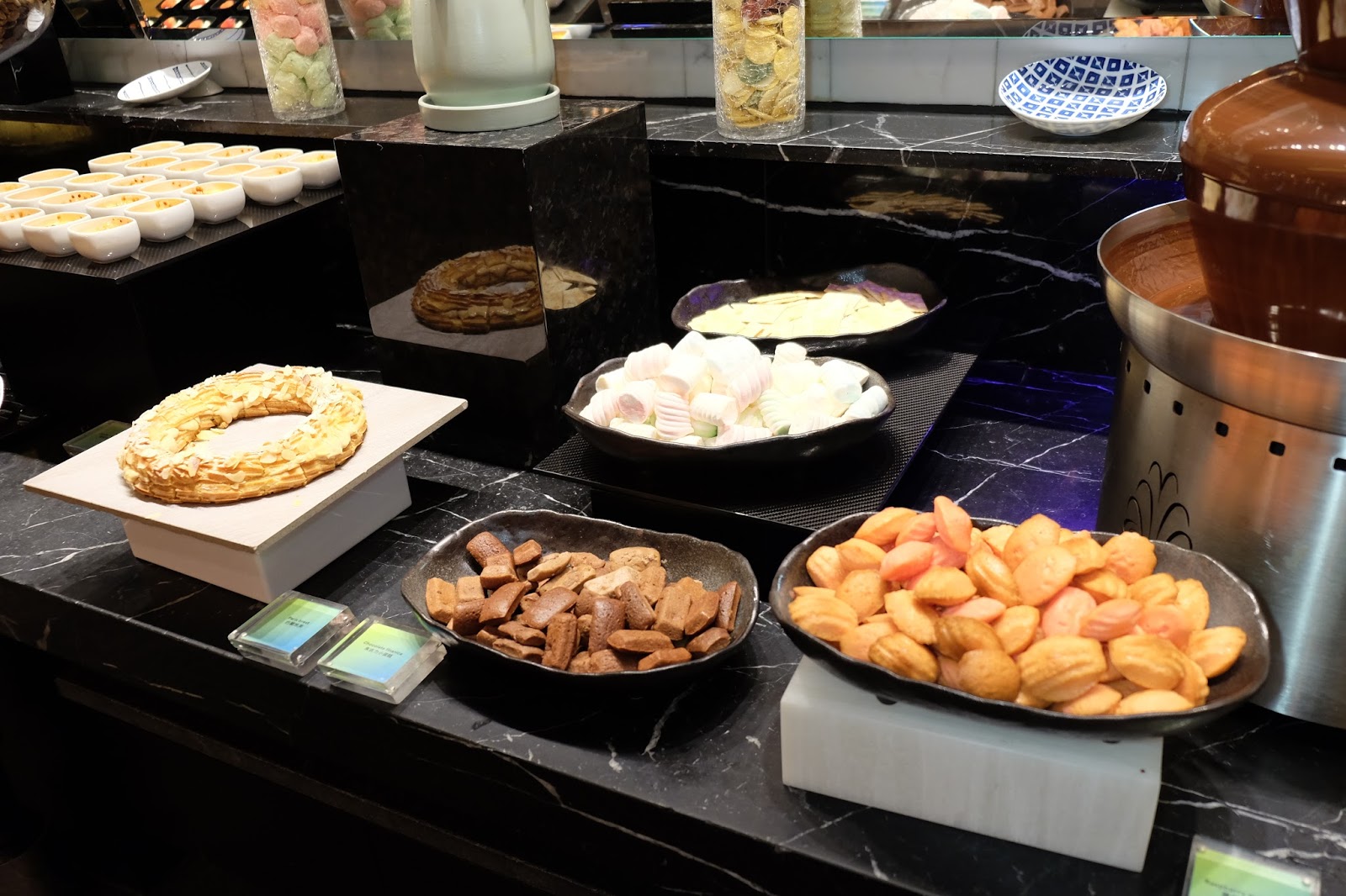 望望甜品區,有伯爵茶慕絲、焦糖吉士布甸、朱古力麵包布甸、黃梅撻、意大利芝士餅、雜果啫喱、士多啤梨雲呢拿撻、綠茶芝麻撻、芝麻綠茶慕絲曲奇、栗子千層蛋糕、芒果芝士蛋糕、巴黎泡芙、朱古力小蛋糕、雲呢拿焦糖燉蛋、歌劇院蛋糕、雜莓雲呢拿奶凍 、香梨焦糖慕絲與及檸檬撻,單係寫返都水蛇春一樣長,只能夠試幾樣,個人比較喜歡口感濕潤的意大利芝士餅和甜而不膩的栗子千層蛋糕,自己並非特別愛甜,但都覺得水準不錯。