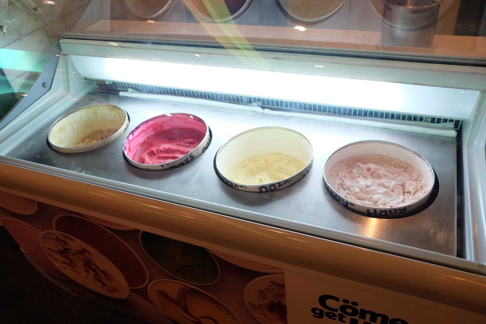 每次望見近十呎長甜品吧,心中不期然嘩了一聲,先講Movenpick雪糕,有士多啤梨、雲呢拿、咖啡及紅桑子雪葩,先掃一round,囝囝就最開心,未食到一半已經掃晒四款。