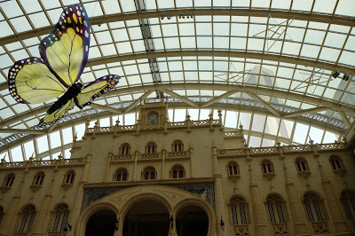 大家check out轉場後,先跑往朋友力讚的MGM酒店,幾年沒來,中庭位圓形大魚缸依然搶眼,充滿了動感,天空中超巨型蝴蝶在飛舞,令人彷彿進入了巨人國,很有童話世界的感覺。