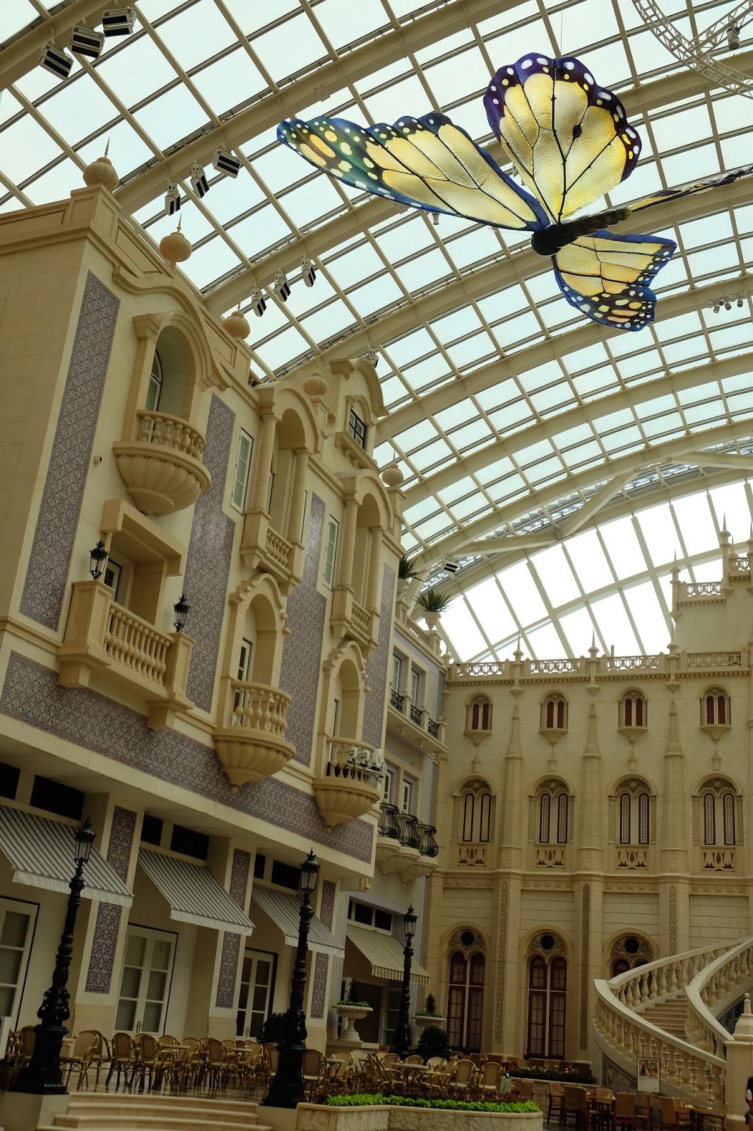 大家check out轉場後,先跑往朋友力讚的MGM酒店,幾年沒來,中庭位圓形大魚缸依然搶眼,充滿了動感,天空中超巨型蝴蝶在飛舞,令人彷彿進入了巨人國,很有童話世界的感覺。