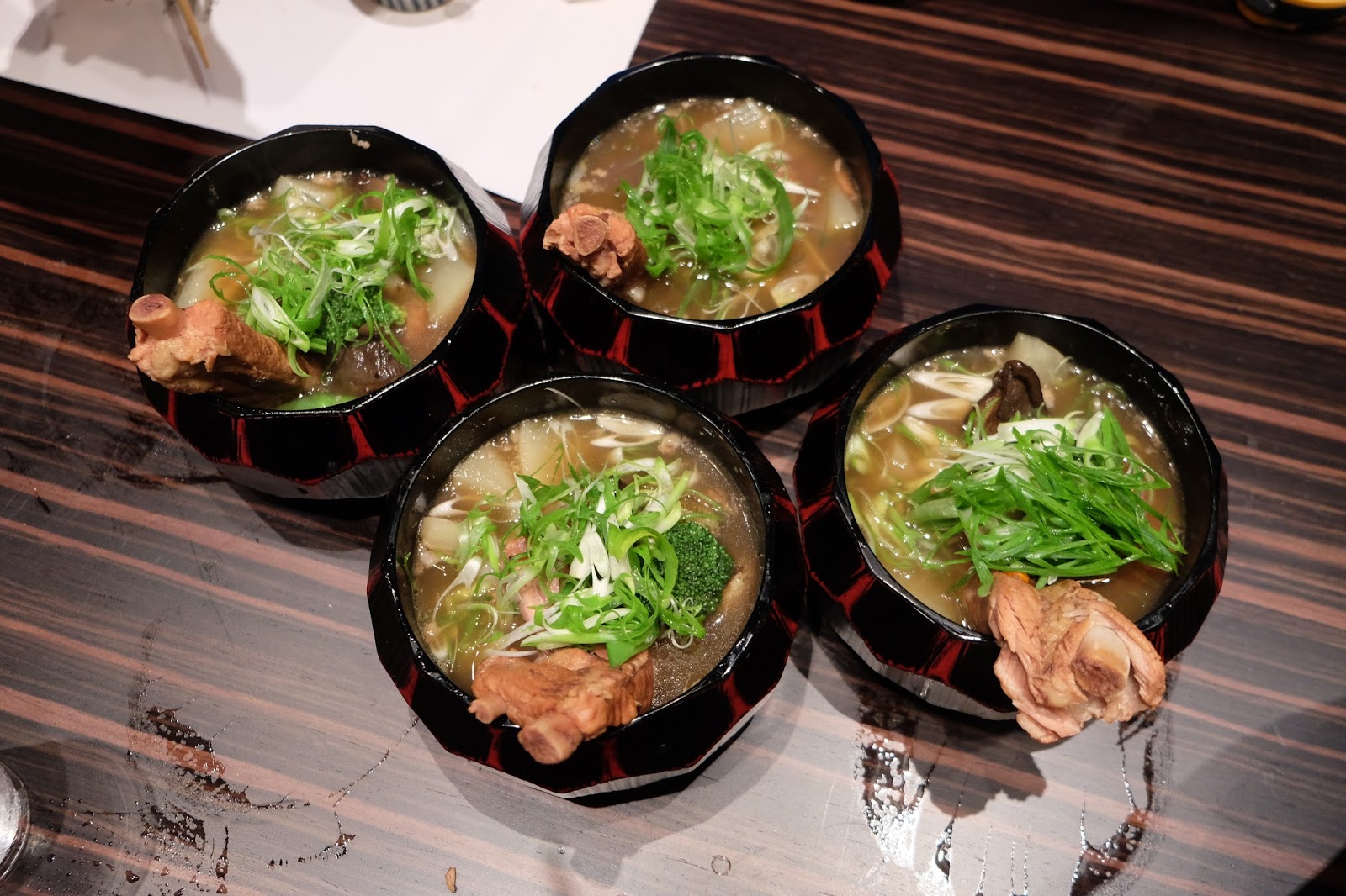 肉骨茶有異於新加坡版,因為用上赤味噌,亦有分紅 / 黑肉骨茶,腩排同樣地煮至軟稔,湯底非常濃郁,用來伴白飯一流。