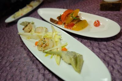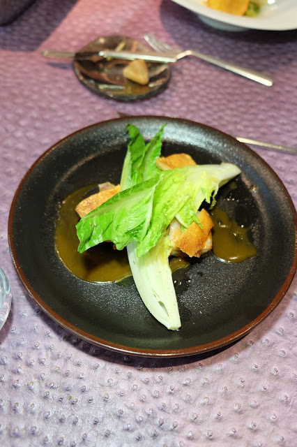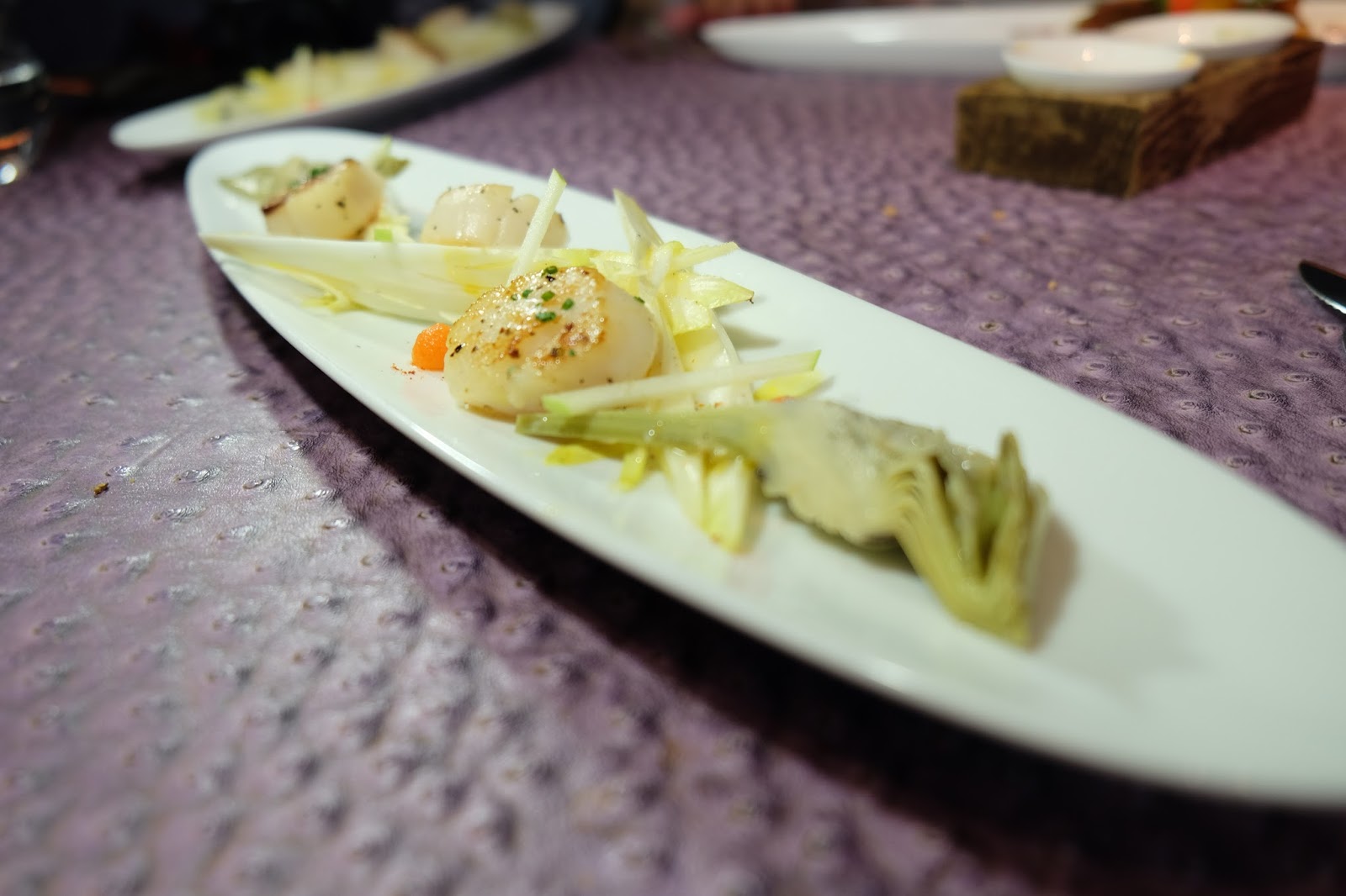 三隻肥大肉厚北海道帶子略為燒過,仍保持柔彈的肉質,伴碟的烤雅枝竹及菊苣,帶來了兩種不同的口感。