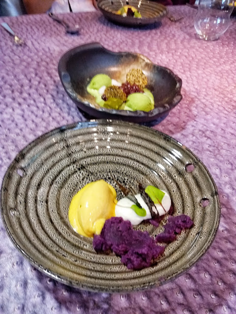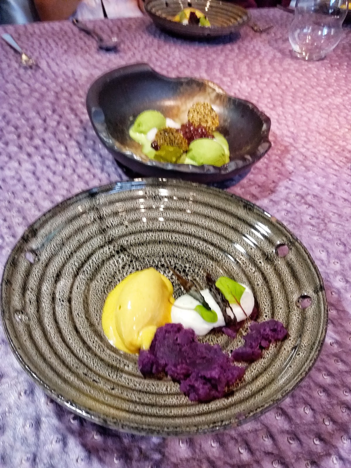 紫、白、黃的組合,色彩繽紛,南瓜雪糕甜而不膩,加上香濃的Ricotta Cheese與軟糯的紫薯,的確是個完美的壓軸。