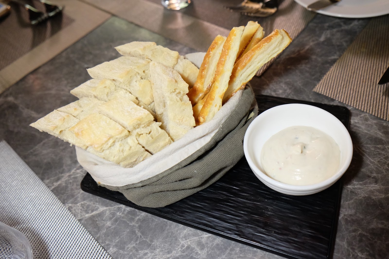 餐前送上麵包籃,拎上手仍有餘溫,正好慢慢食,用來等朋友出現。
