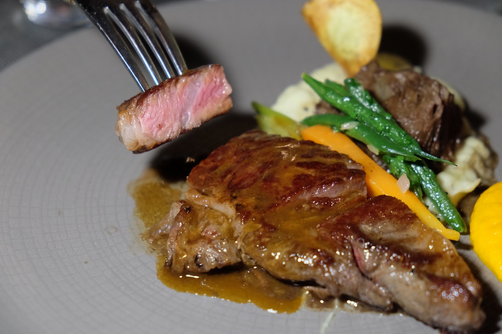 包含了慢煮牛面頰及香煎肉眼及,以兩種不同部位配以不同手法處理。