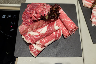 自己一家都是「牛魔王」,火鍋配料首選各個部位或地區的牛肉,而事實上,望下ipad餐牌,又幾多選擇,就先來一份精選牛肉拼盤(宮崎和牛牛肩頸脊A5級 、澳洲手切和牛肉眼M5級、 本地新鮮牛頸脊、美國極級牛肋片、巴西牛舌) ,試過之後,再決定追點未遲。
