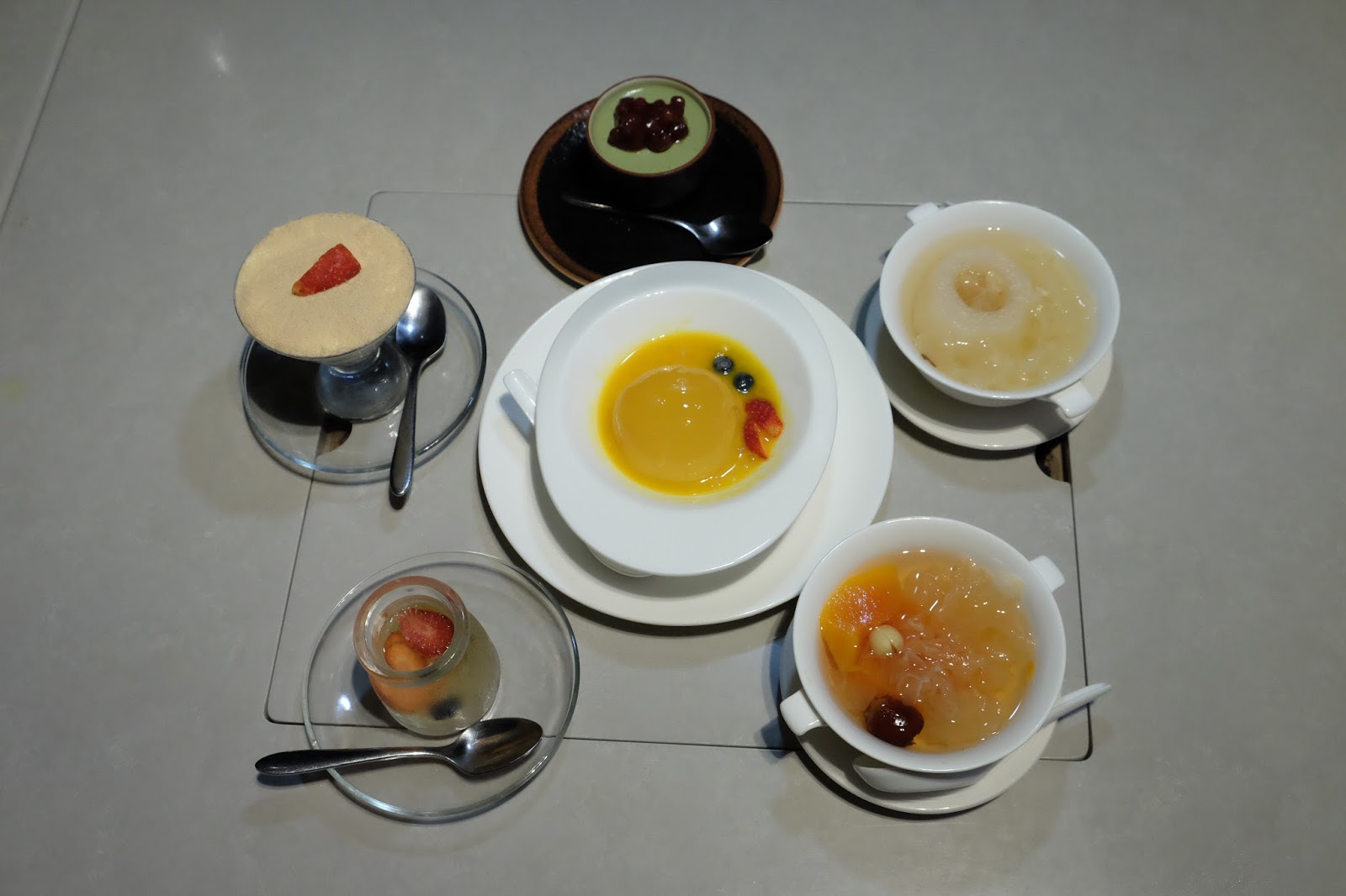 至於細囝就對綠茶紅豆意大利白酒奶凍讚不絕口,紅豆軟稔甜美,奶凍香滑,三扒兩撥掃清光。