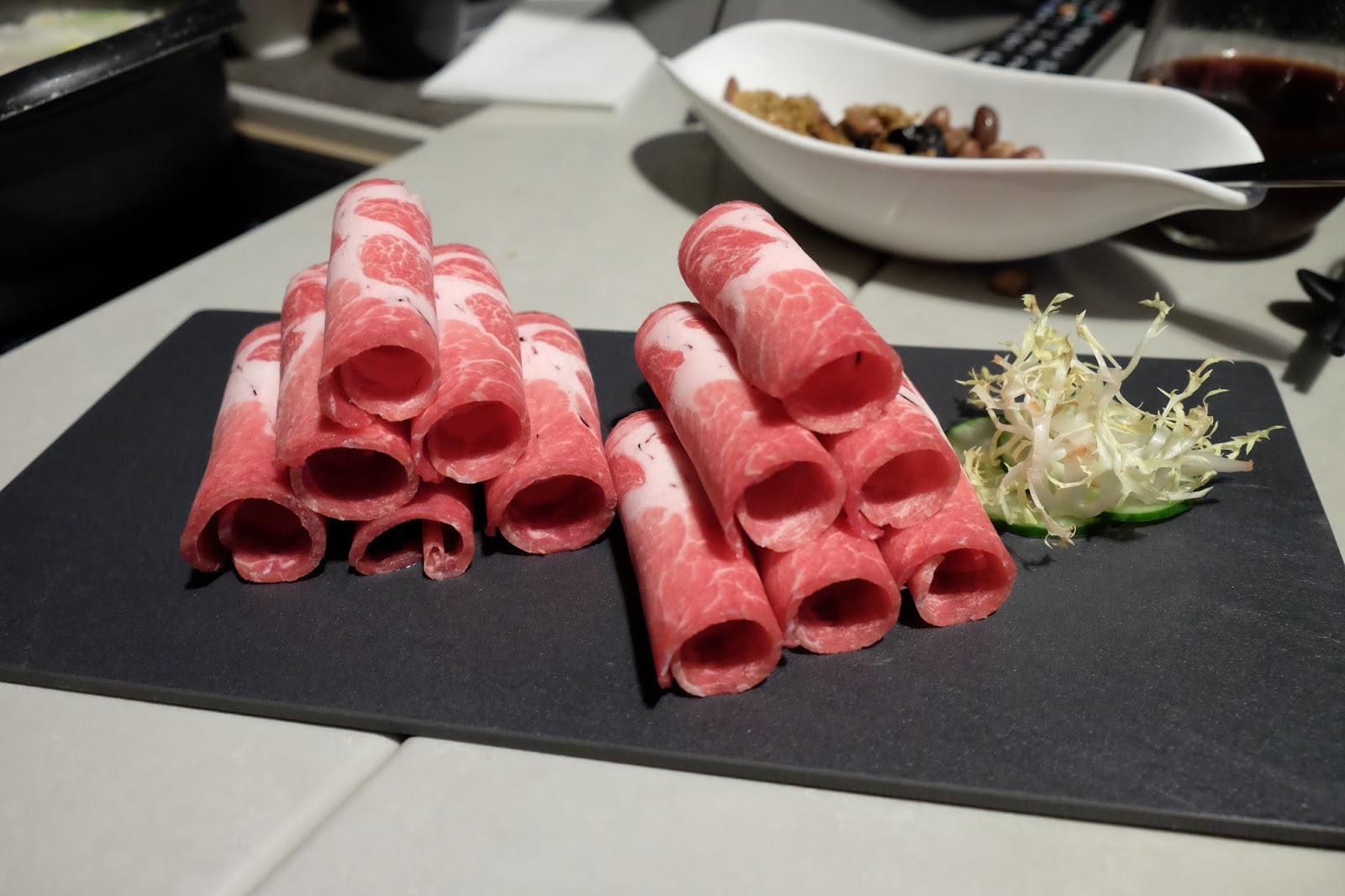 自己一家都是「牛魔王」,火鍋配料首選各個部位或地區的牛肉,而事實上,望下ipad餐牌,又幾多選擇,就先來一份精選牛肉拼盤(宮崎和牛牛肩頸脊A5級 、澳洲手切和牛肉眼M5級、 本地新鮮牛頸脊、美國極級牛肋片、巴西牛舌) ,試過之後,再決定追點未遲。