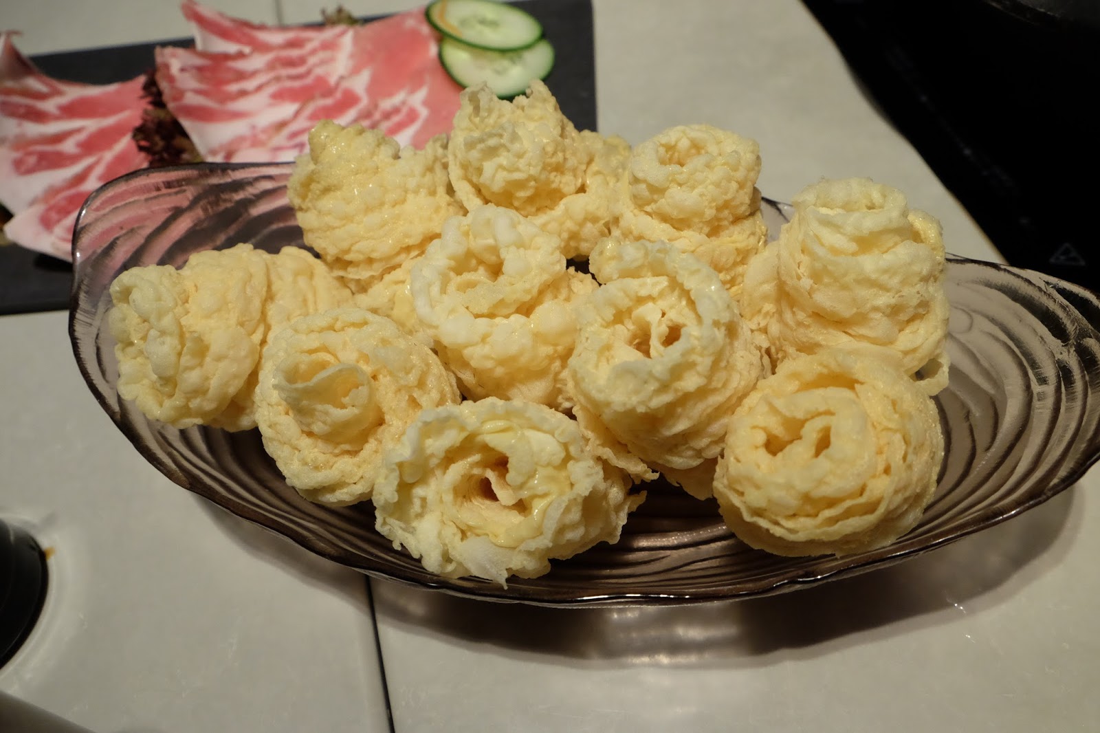 太太最喜歡響鈴卷,每次火鍋都是必點之物,稍微泡浸在湯內一兩秒,已經蘸滿了湯汁,略帶脆口,又有豆香,難怪太太會如此酷愛。