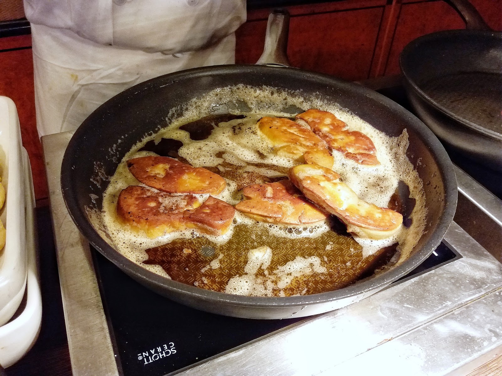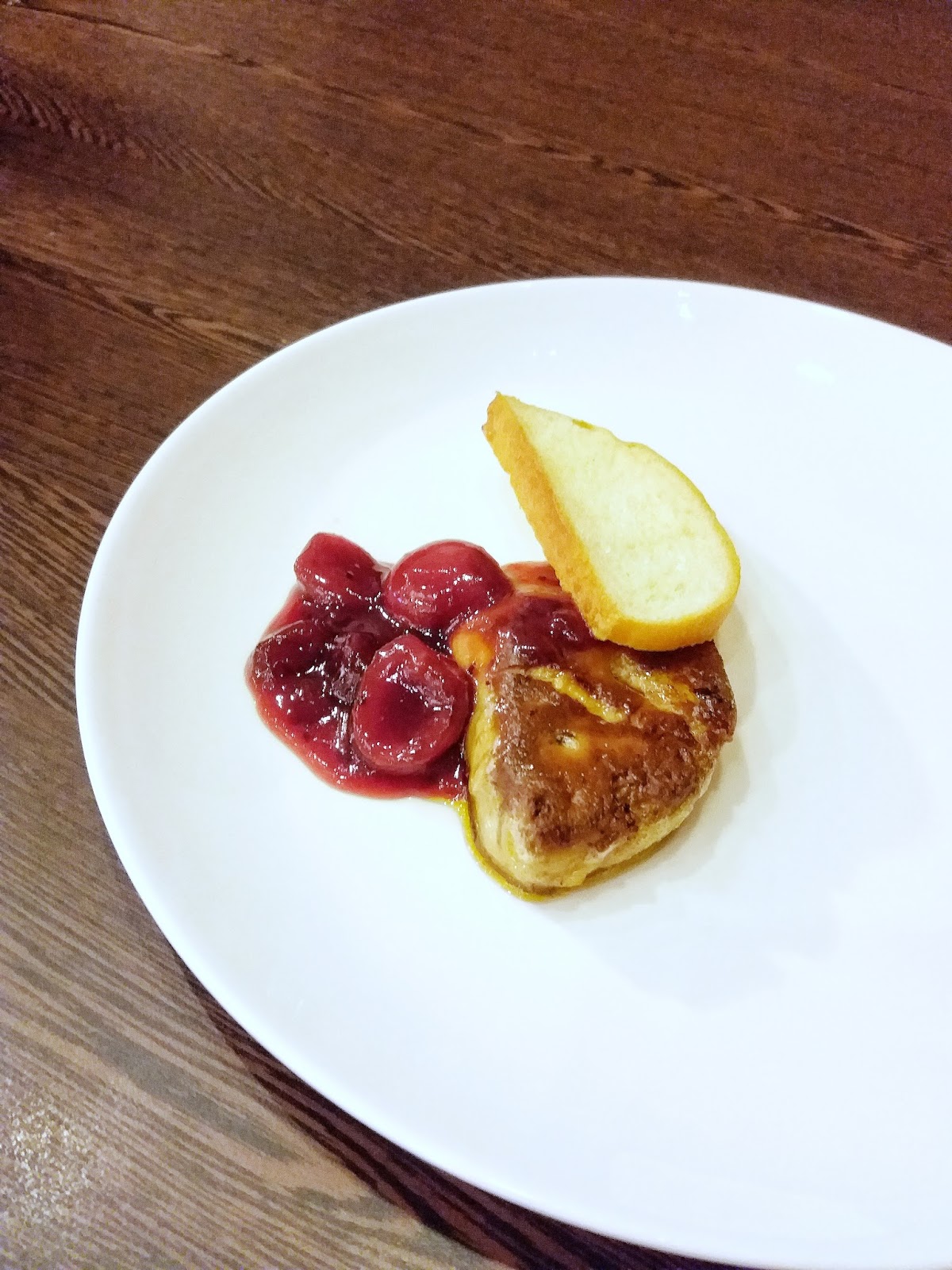 大堂的另一邊,已經傳來陣陣香煎鵝肝的油香,足半吋厚,煎得兩面金黃,再配以紅桑子汁,減輕了油膩感。