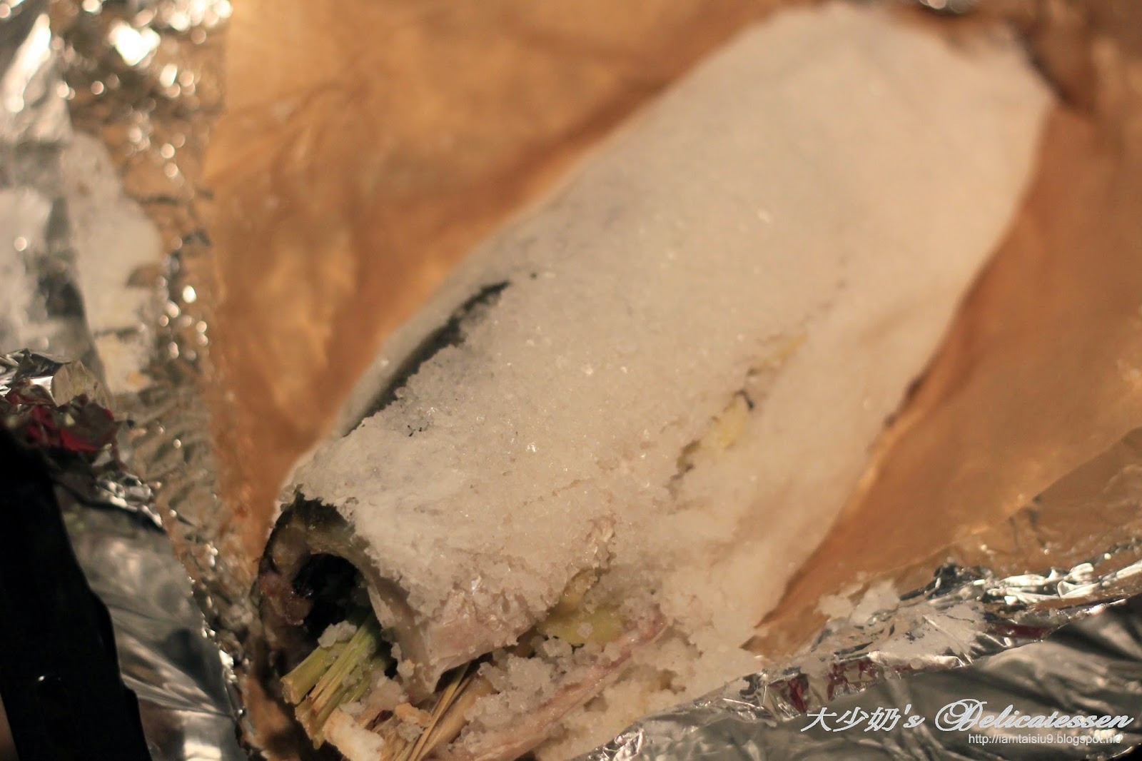 錫紙鋪底放上粗鹽大約500g,去街市雜貨店買一包便可以唔需要靚鹽