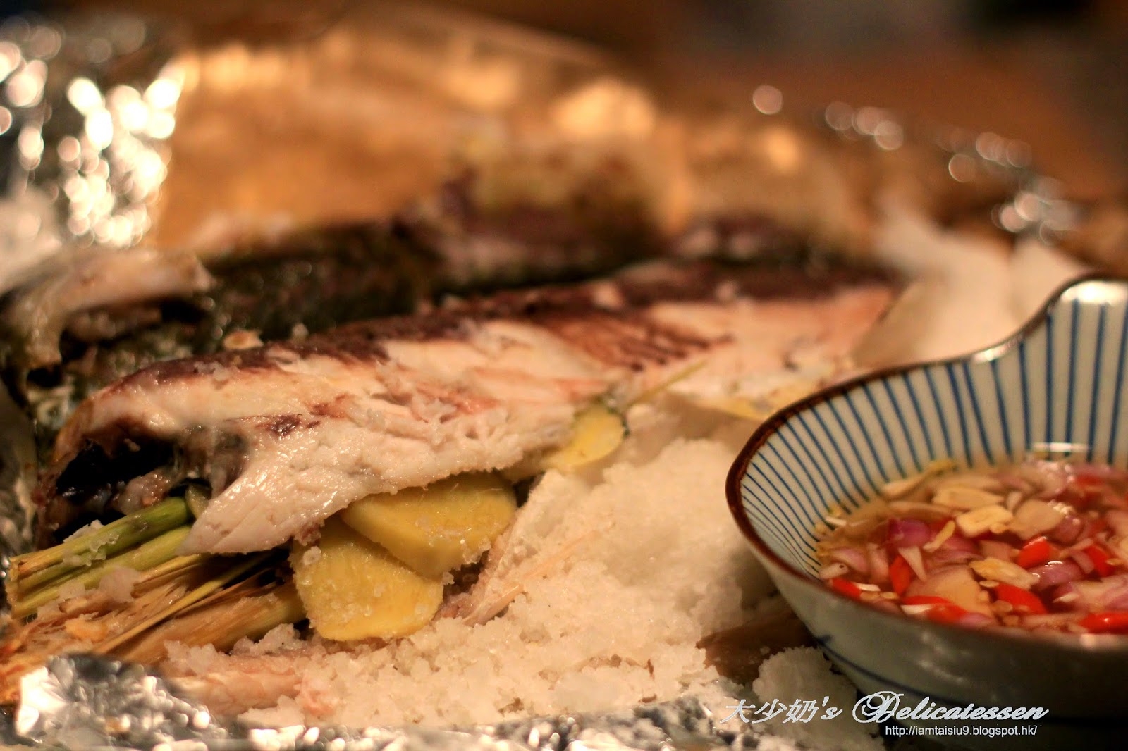 泰式做法好簡單,塞幾支拍過既香茅入魚肚,仲有南薑