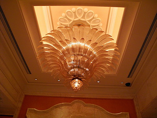 大堂有一個大水晶燈,裡面無燈膽,靠側邊既燈既反射