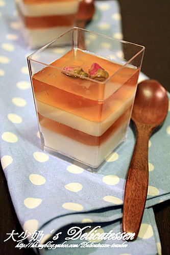 我鍾意整蘿蔔糕,但唔鍾意整年糕而且我唔鍾意煎糕年糕蒸又覺得麻麻地 無甜糕又好似爭dd,所以...........我今年整凍糕 琴日買唔到桂花,退而求其次買玫瑰花結果就整呢個....椰汁玫瑰糕噢!估唔到效果好好玫瑰花真係好香啊 新年就整呢個比大少爺食,哼~~~ 食譜 椰汁材料 : 熱水 200 ml魚膠片 15 g (用凍水浸軟)糖 40 g 椰汁 100 g淡忌廉... 看全文