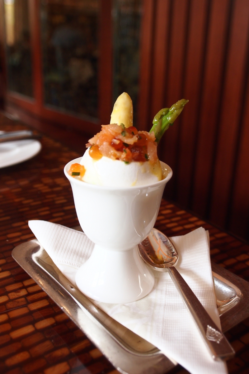 返回座位,服務員備上精緻的有機農場雞蛋配特色三文魚子,簡直入了我的心頭好,因為我是非常愛吃雞蛋,有機半熟蛋與三文魚及三文魚籽形成三層不同口感。