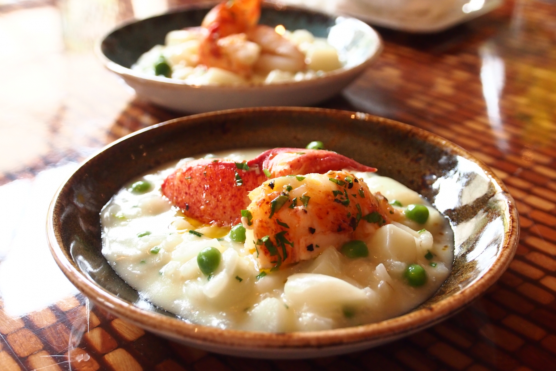 我們一點到達,一坐下就有服務員端上白露筍意式燴飯配龍蝦,噫~~~~?這不是吃自助餐的嗎?哦~ 原來這個 Sunday Brunch 會間歇性送上新鮮即製的食物及特飲,讓客人體味合時食品的驚喜。新鮮的龍蝦肉真的非常爽口,配上粒粒分明的意大利飯,馬上打開週日沈睡的胃口。
