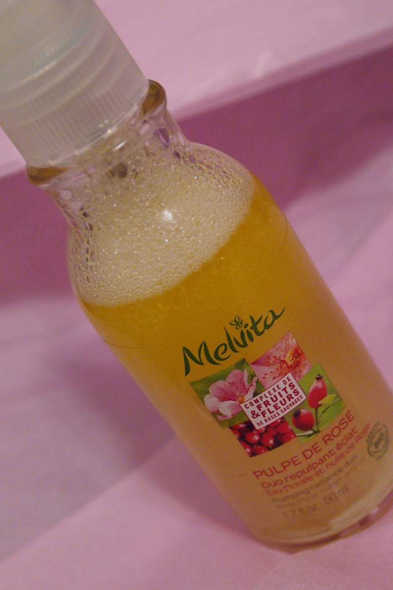 妝前定必使用 Melvita 有機花果水油亮肌液。