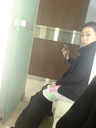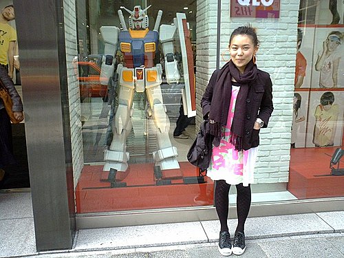 T-shirt裙子外+外套+頸巾也有點抵擋不住, 很冷呢~