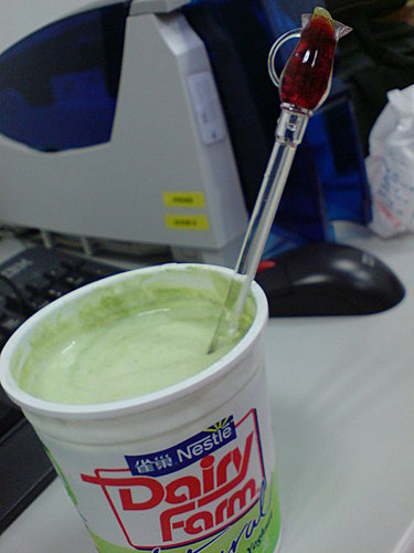 早排因為唔開心,,化悲憤為食量,,點知真係肥鬼左,,前日腸胃炎,,入左鏡湖,,攪到行快兩步個肚都痛,,醫生叫我食d流質野,,自己又為左清下腸胃,,咁我就要開始順便on diet下,,我既早餐好健康食左3日yogurt,,但今次做法好唔同..(登-燈-登-鄧)..嗱~~就係400cc左右既yogurt+3茶匙既綠茶粉,,之後要慢慢食晒佢....點解要咁食??就係唔使10mins--30mins就有得去"唔唔"..... 看全文 -