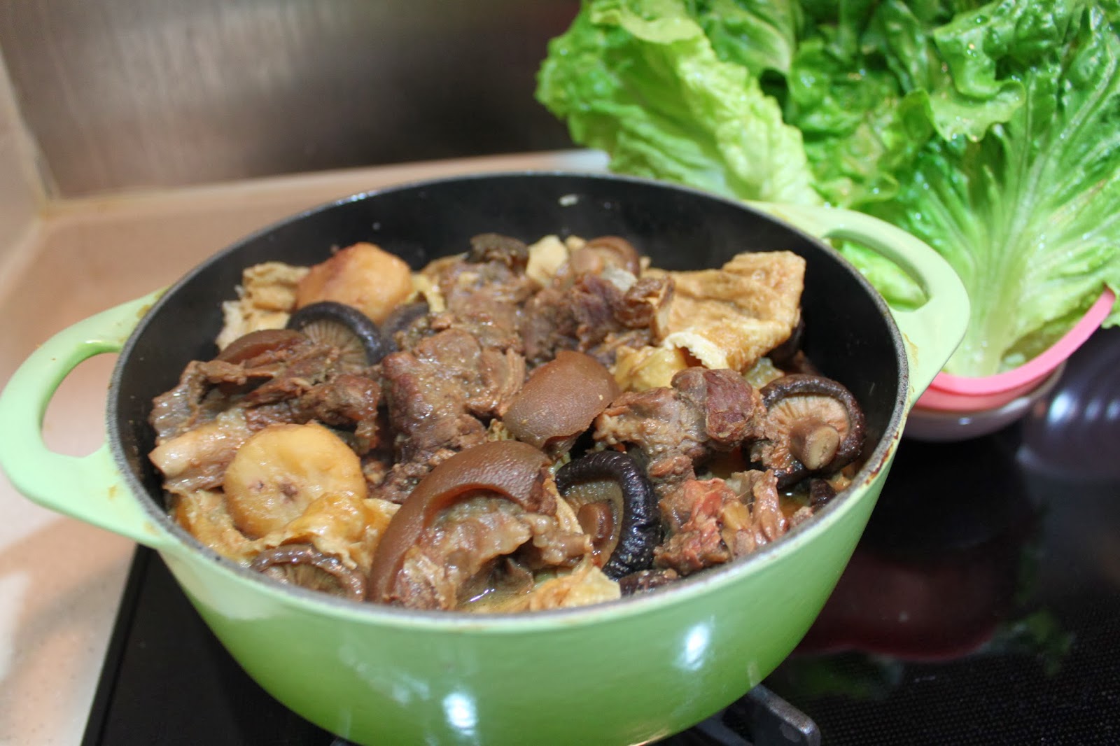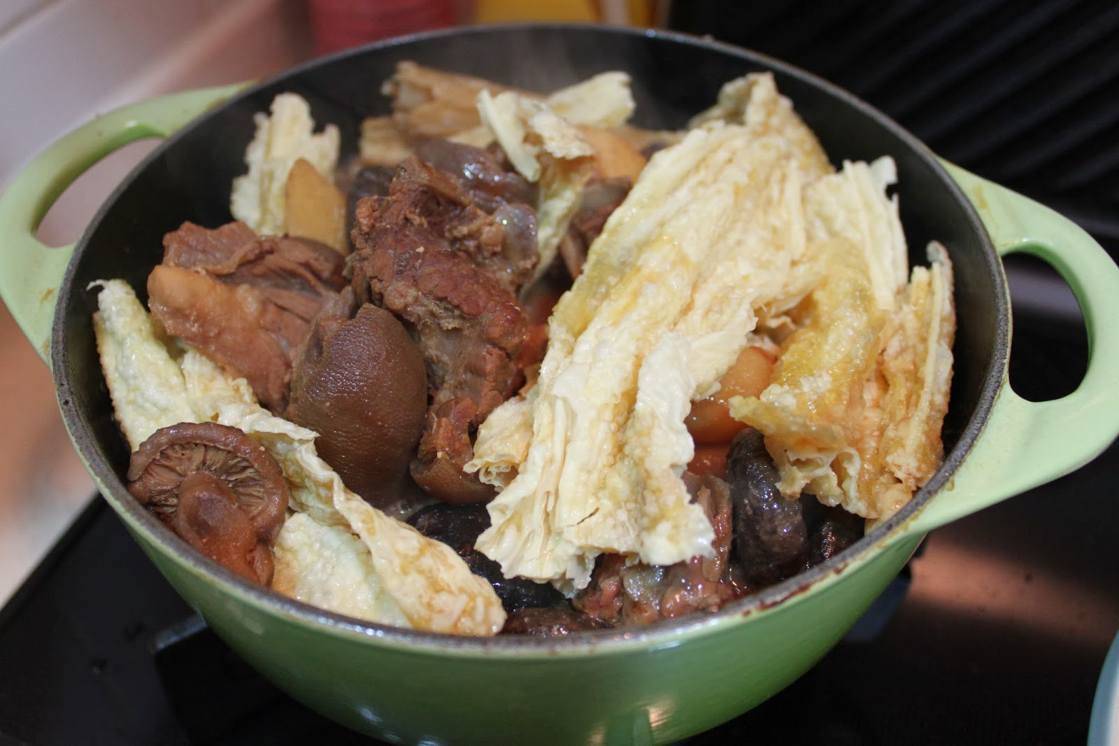 1小時30分鐘後, 再加入炸枝竹炆10分鐘