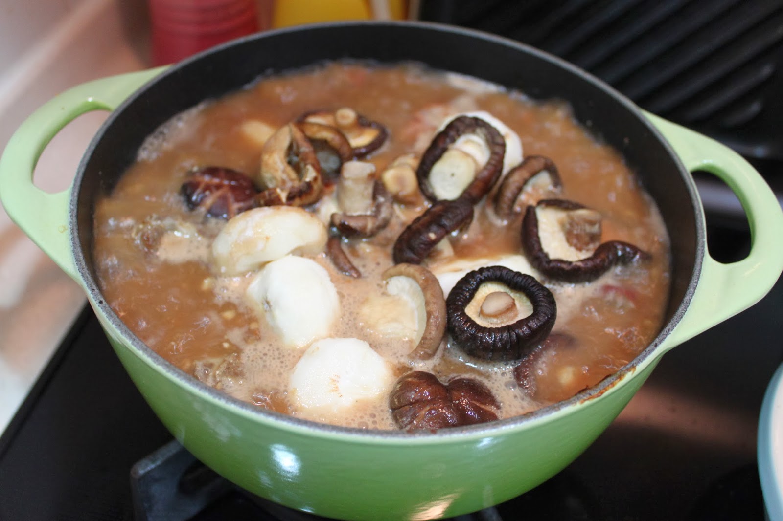 水滾後, 隨即加入馬蹄及冬菇,